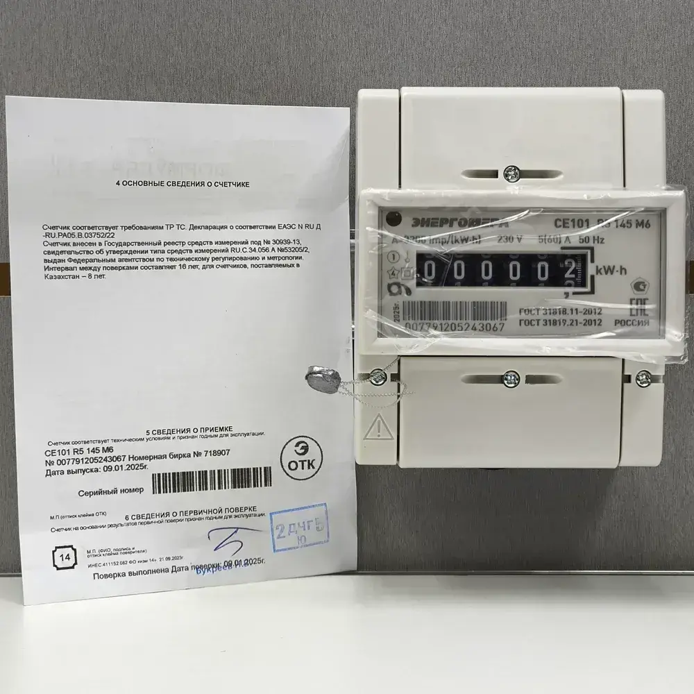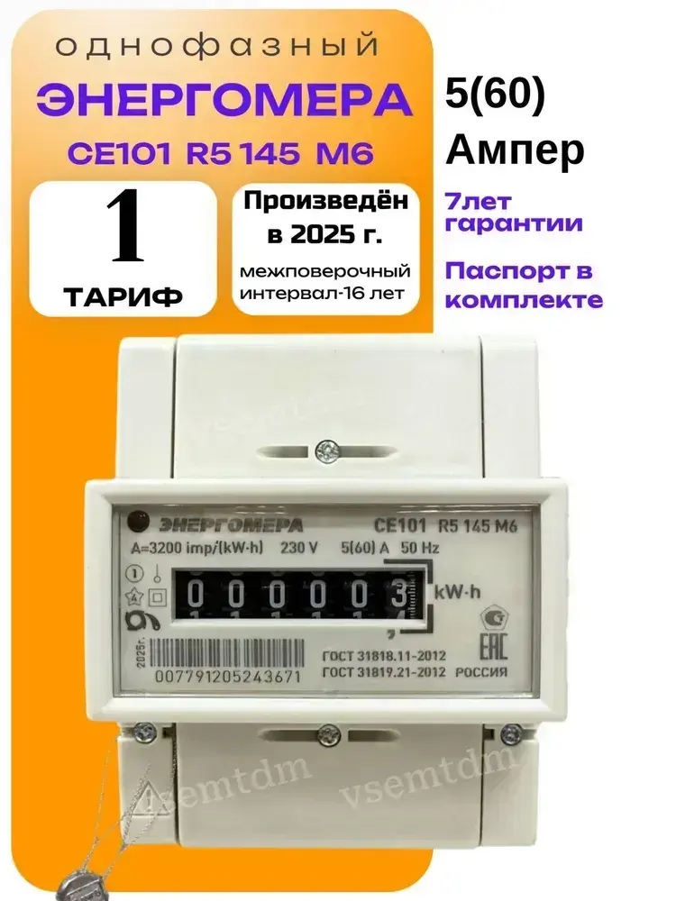 Счетчик CE101 R5 145 M6 5-60A однофазный однотарифный 2025г. Энергомера