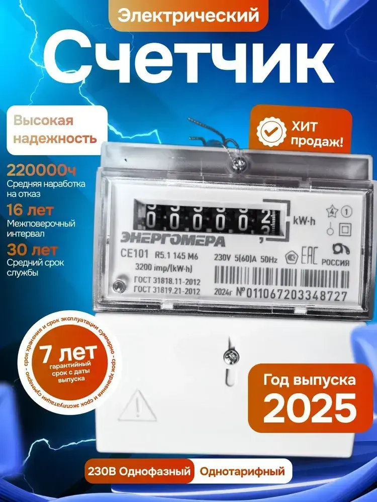 Счетчик электроэнергии однофазный однотарифный CE101 R5.1 145 M6