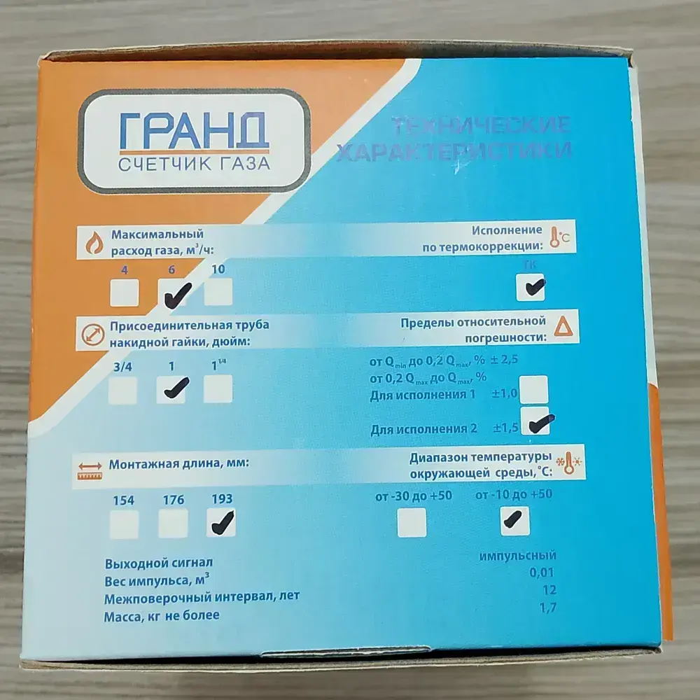 Счетчик газа Гранд 6 ТК 1" дюйм (Ду 32), 193 мм