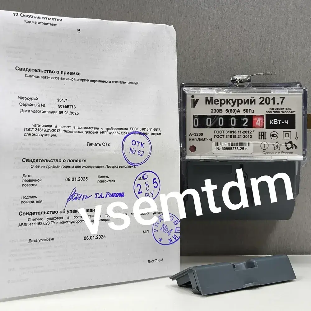 Счетчик Меркурий 201.7 5-60А однофазный однотарифный 2025г. Инкотекс