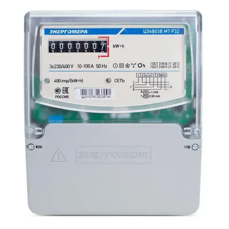 Счетчик ЦЭ6803В 3ф 10-100А класс точн. 1.0 1 тариф. универс. крепл. 230В 1 4 пров. М7Р32 Энергомера 101003001011076