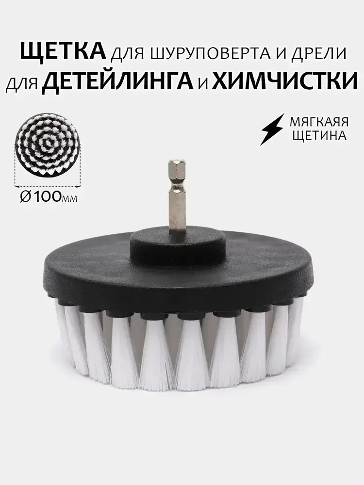 Щетка для шуруповерта и дрели, для детейлинга и химчистки, 100мм, мягкая жесткость
