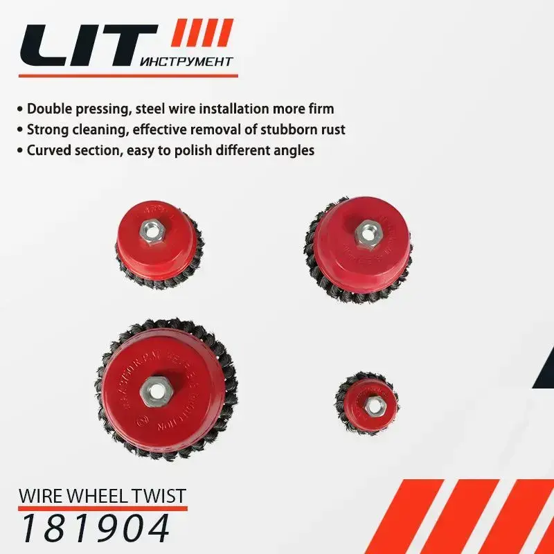 Щетка для УШМ (чашка) 75мм/М14 кручен.сталь №3 47712