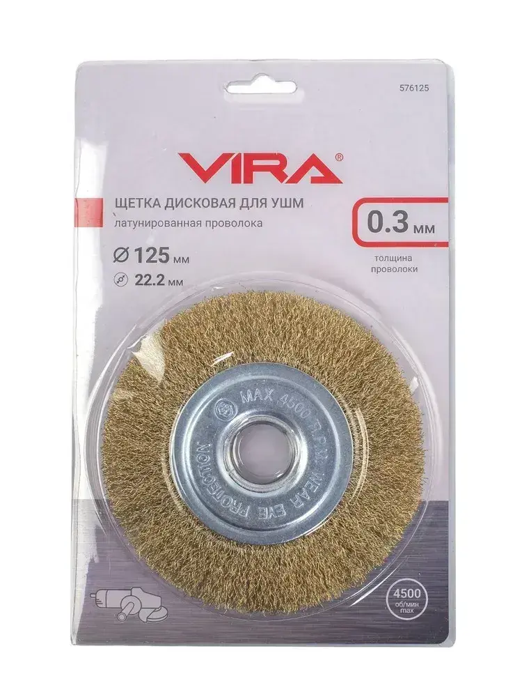 Щетка для УШМ плоская латунированная 125 мм VIRA