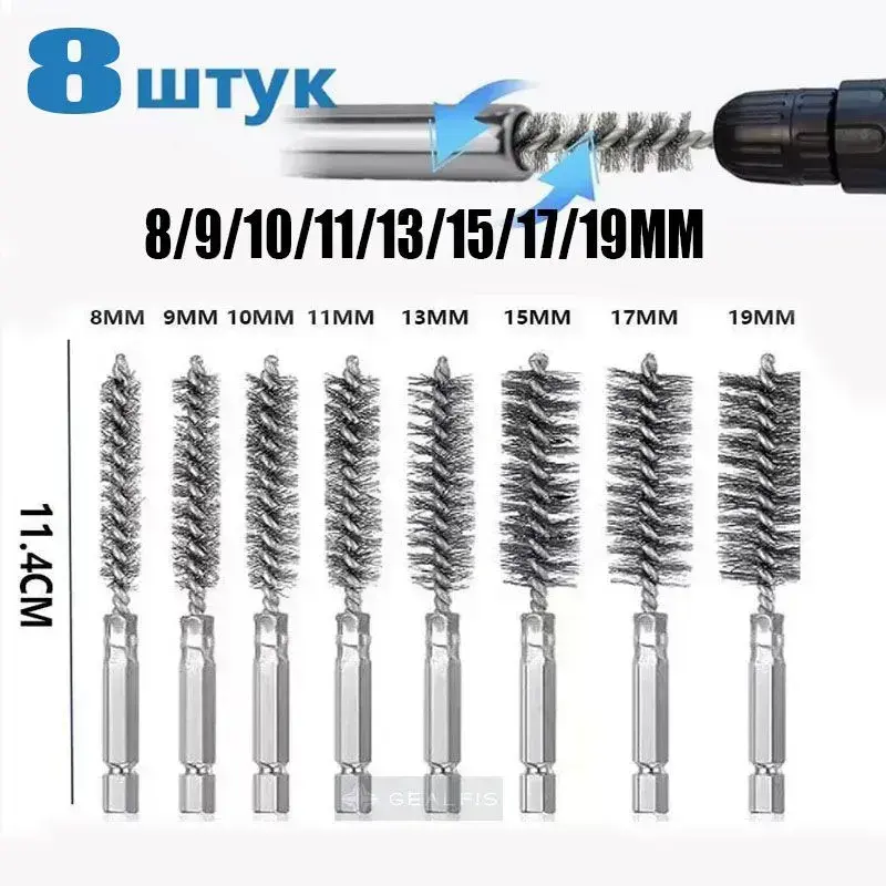Щетка (ерш) для чистки труб, 1/4 дюйма 1 комплект из 8 штук