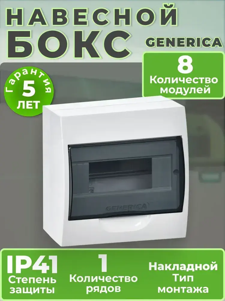 Щиток (бокс) электрический для автоматов на 8 модулей, навесной IP41 GENERICA