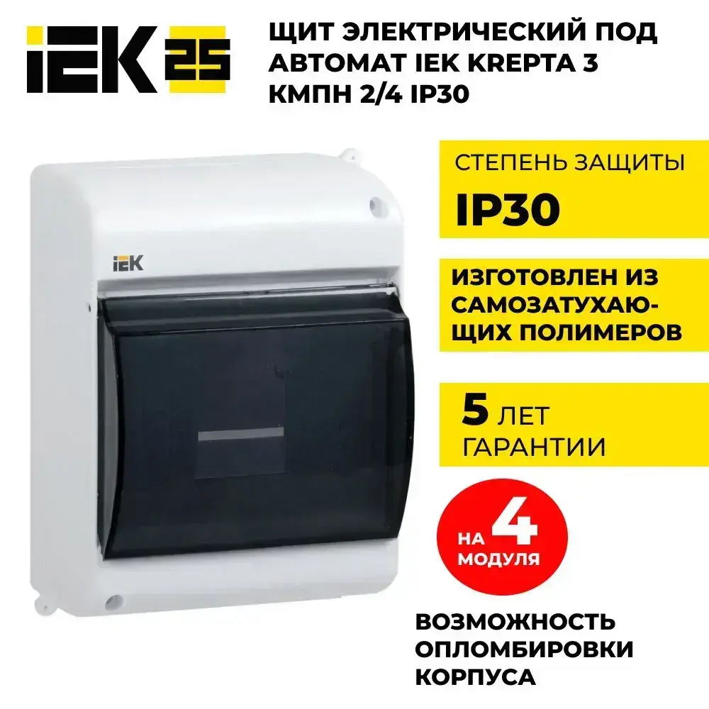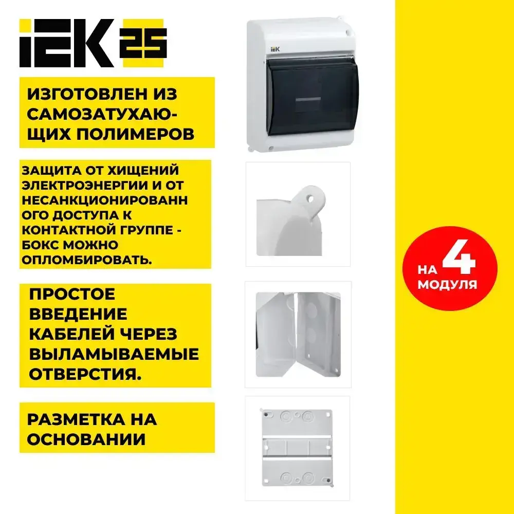 Щиток электрический пластиковый, Бокс для автоматов, щит распределительный навесной на 4 модуля IP 30 IEK (корпус пластиковый)