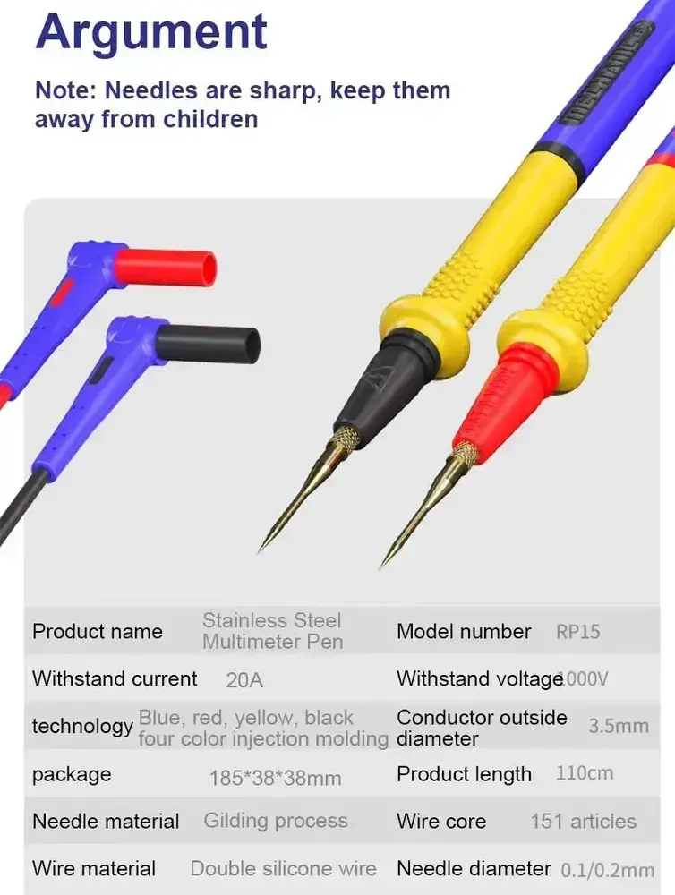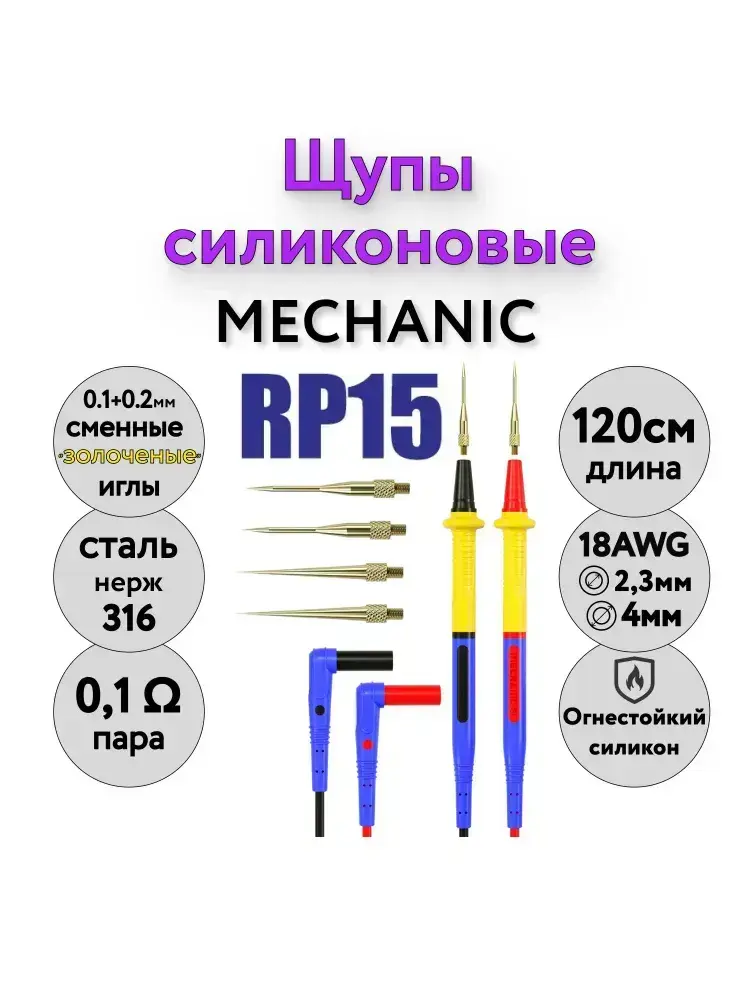 Щупы для мультиметра силиконовые 20А RP15 MECHANIC / провода для тестера 1,2 метра