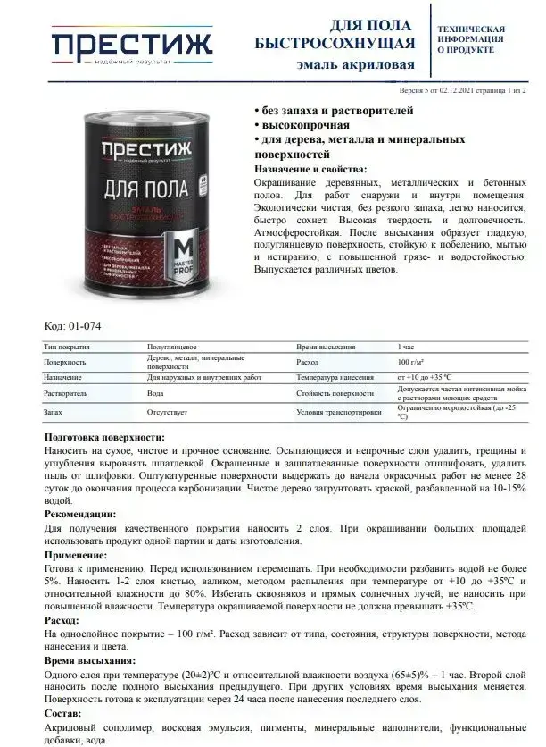 СЕРАЯ краска для пола ПРЕСТИЖ 2,8 кг. Акриловая износостойкая краска для пола БЕЗ запаха и растворителей. Мастер