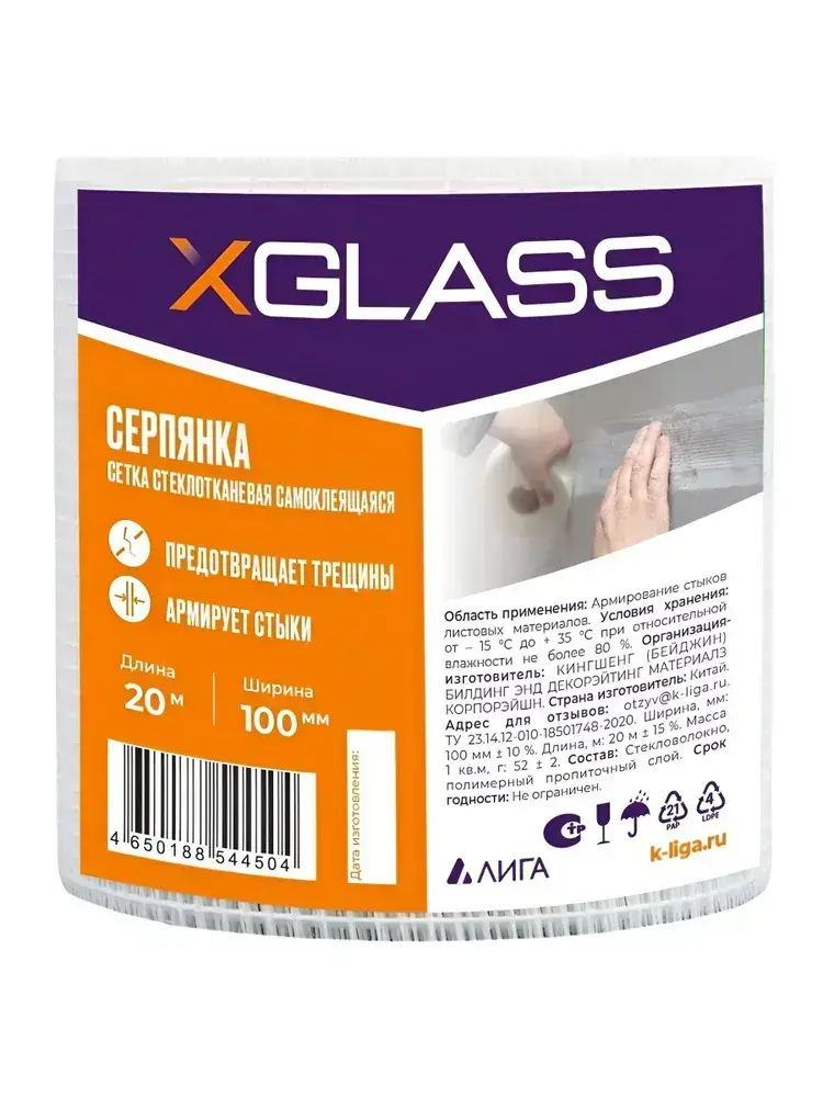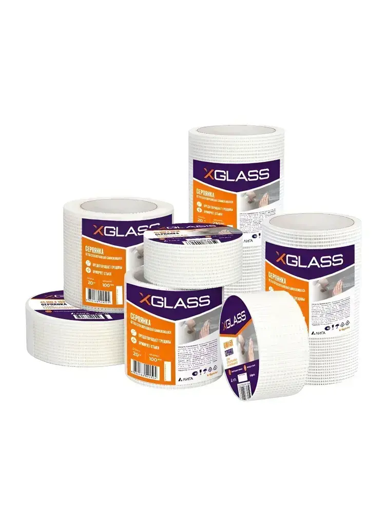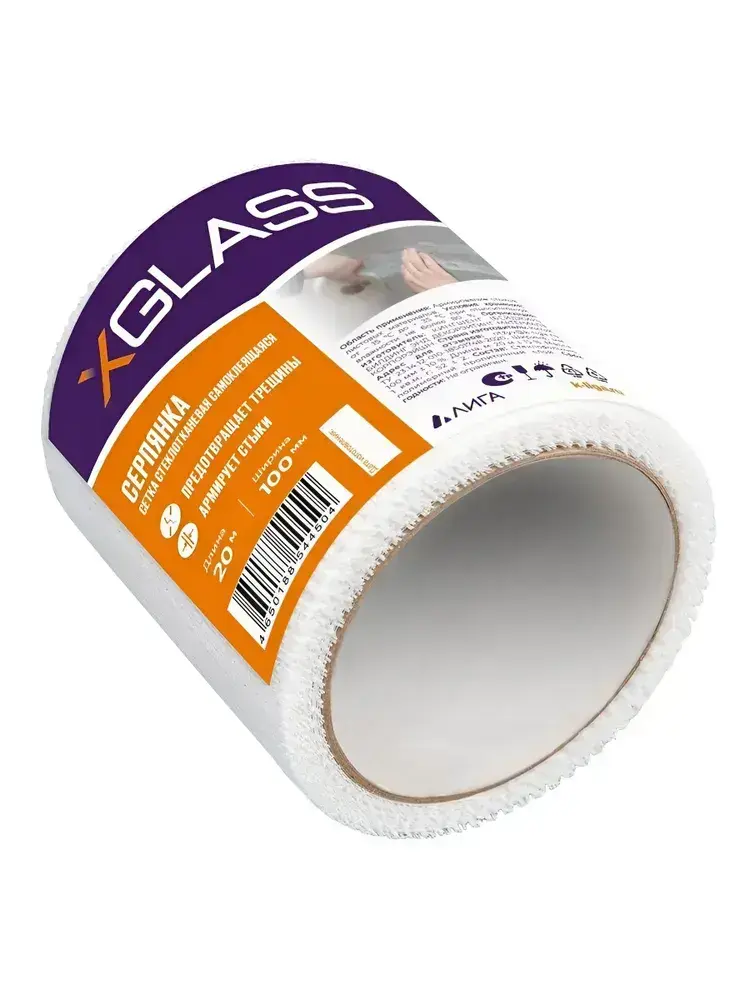 Серпянка самоклеющаяся 100мм х 20м, сетка самоклеющаяся, сетка клейкая, XGLASS