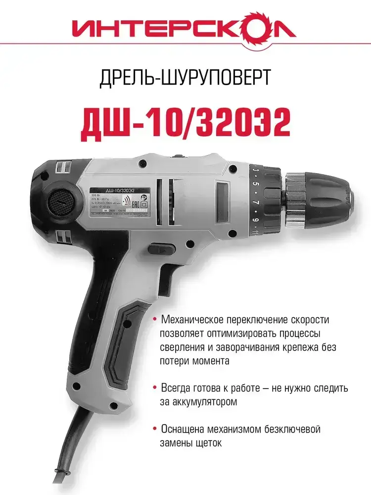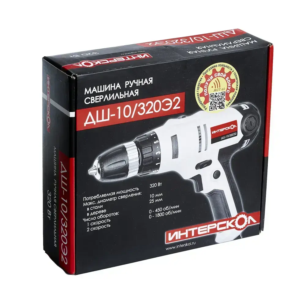 Сетевая дрель-шуруповерт ИНТЕРСКОЛ ДШ-10/320Э2, 220.1.1.00