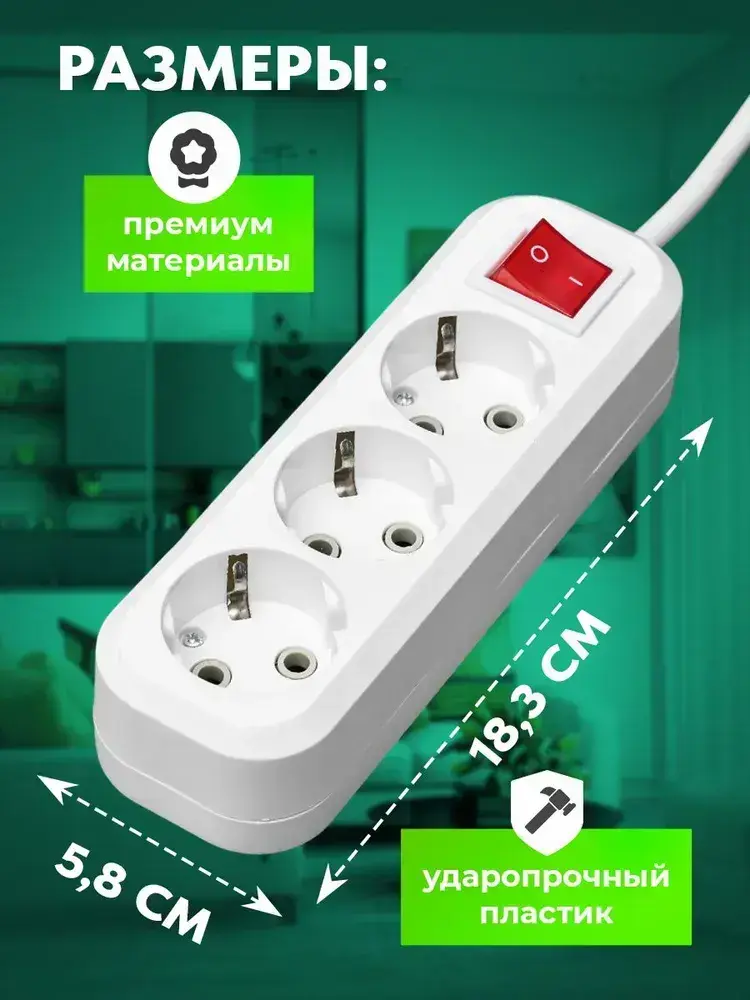 Сетевой фильтр бытовой, удлинитель электрический EXEL, 3 розетки с заземлением с выключателем, 1 метр, 16А