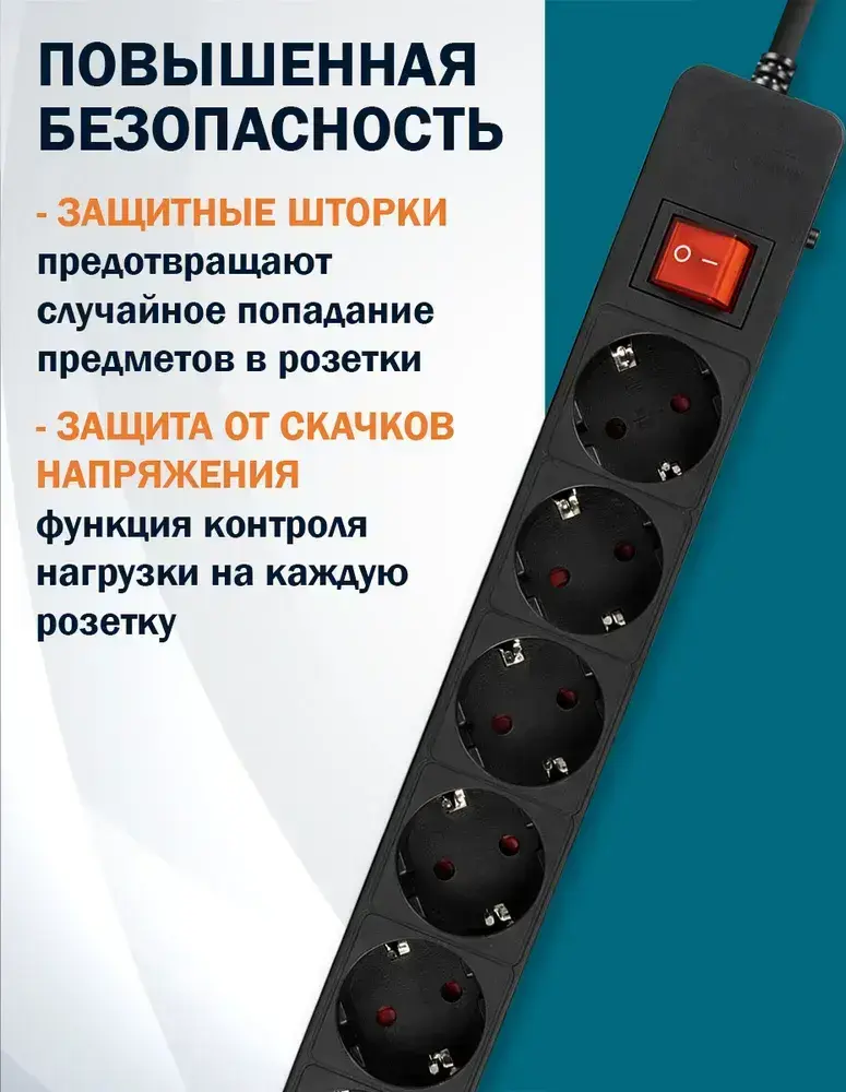 Сетевой фильтр Filum FL-SP6-1.8M-16, 6 розеток, шнур 1.8 м., черный