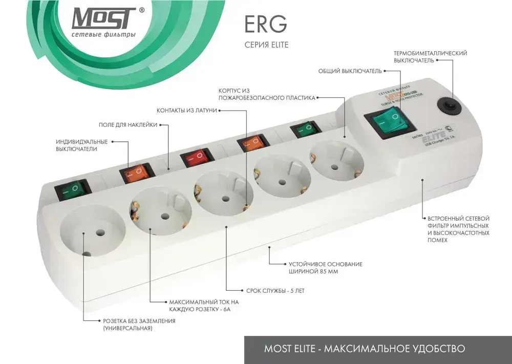 Сетевой фильтр Most ERG 2м, удлинитель сетевой