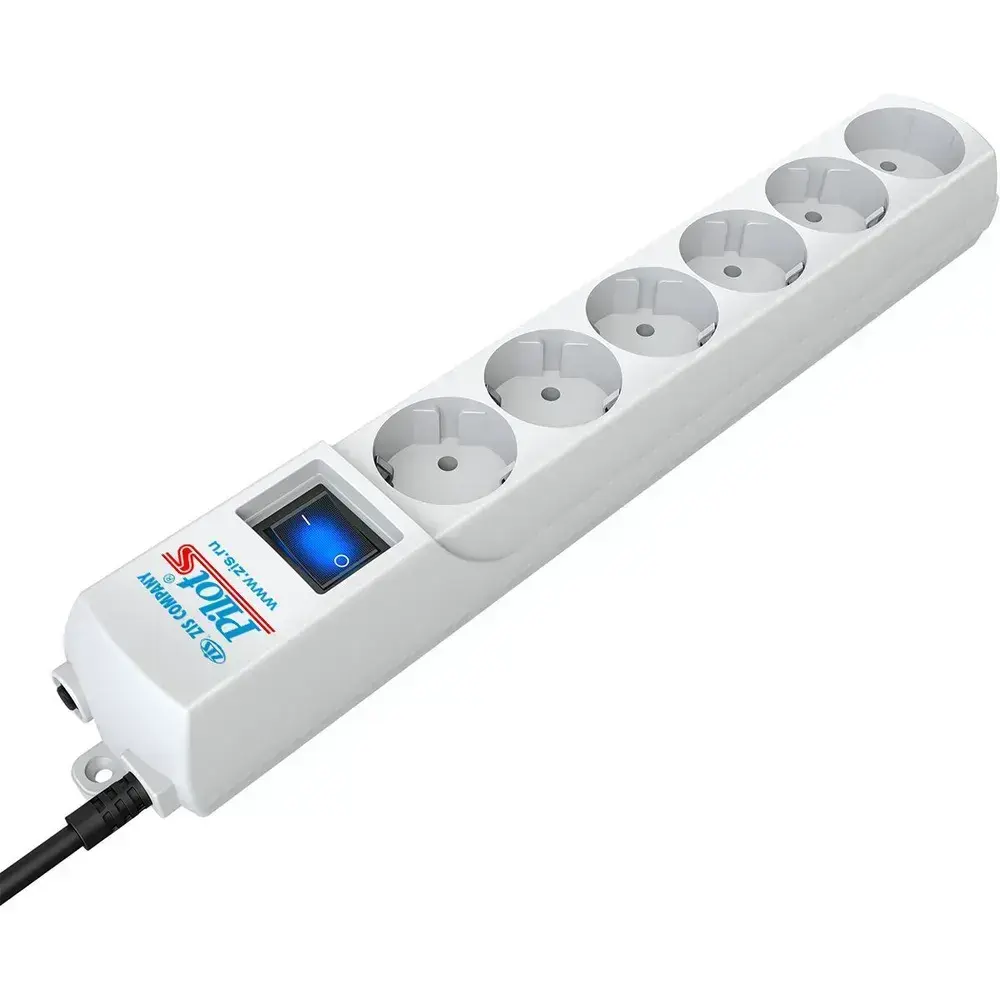 Сетевой фильтр с предохранителем 5м (6 розеток) белый Pilot S