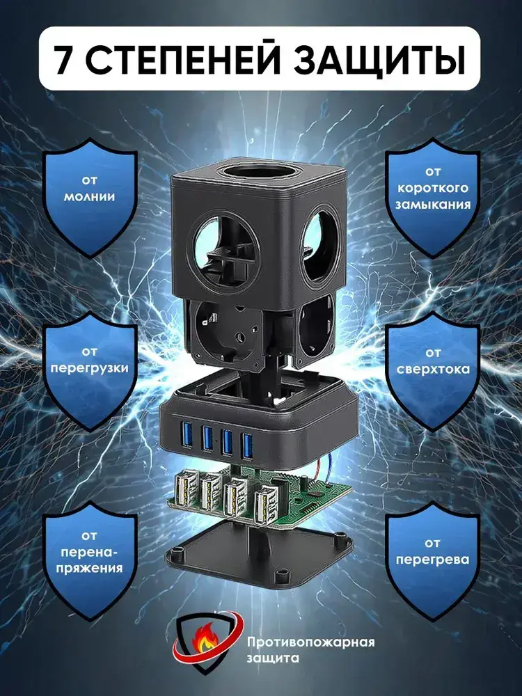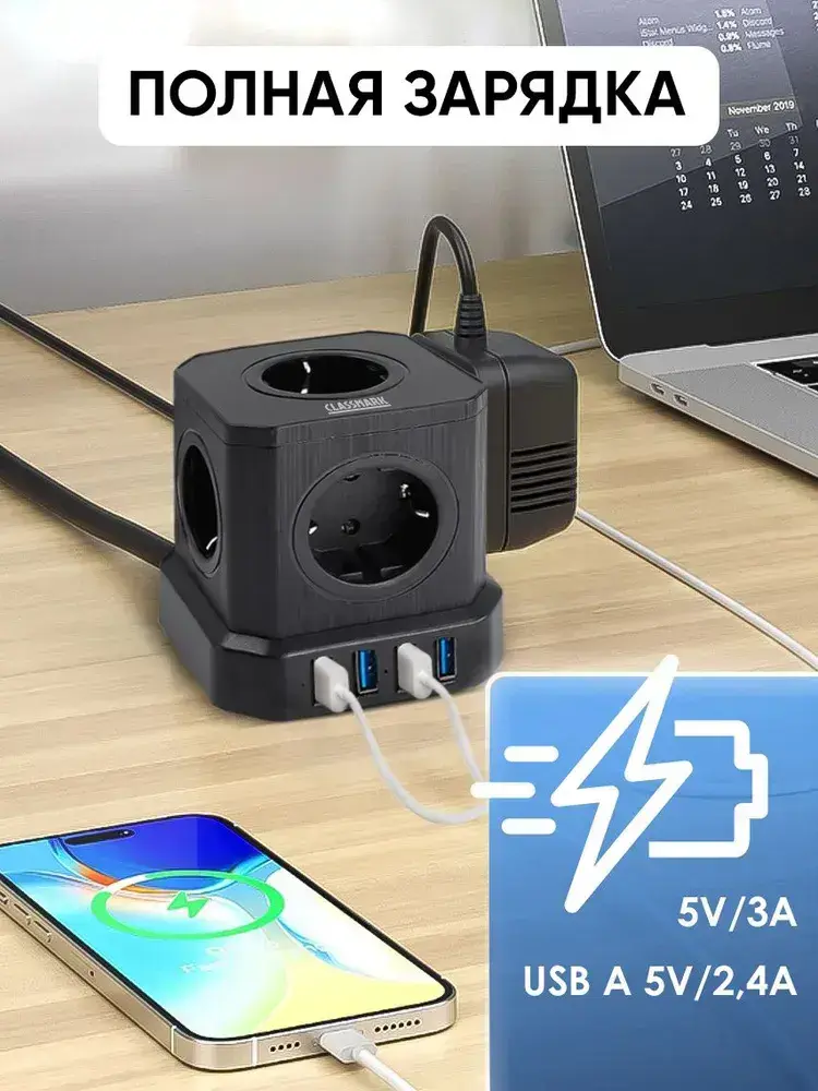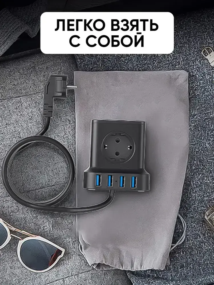 Сетевой фильтр с предохранителем с USB и type-c провод на 2 метра