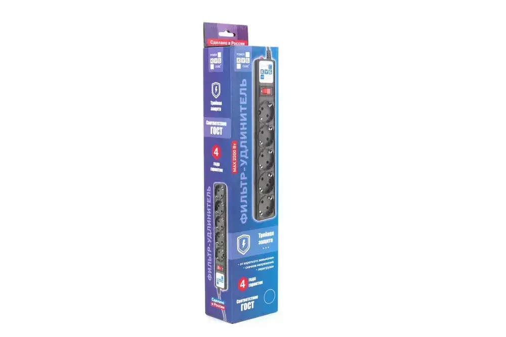 Сетевой фильтр удлинитель Power Cube "КУБ", 2200 Вт, 10А, 5 розеток, с заземлением и защитой, удлинитель 7 метров