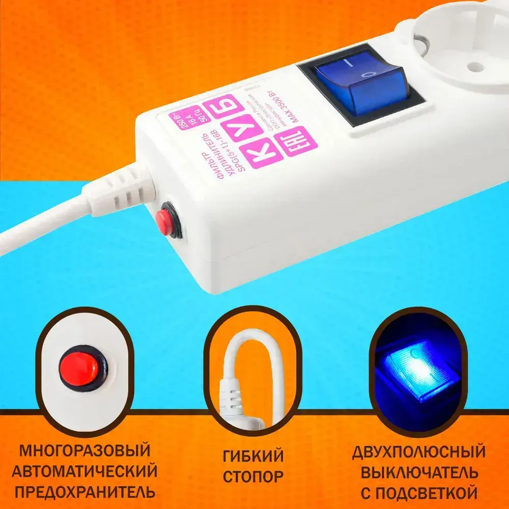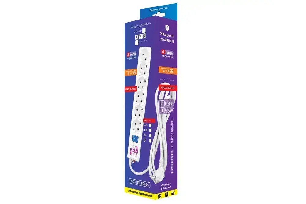 Сетевой фильтр удлинитель Power Cube "КУБ", 6 розеток, 3*1.5мм, 16А, 3 метра