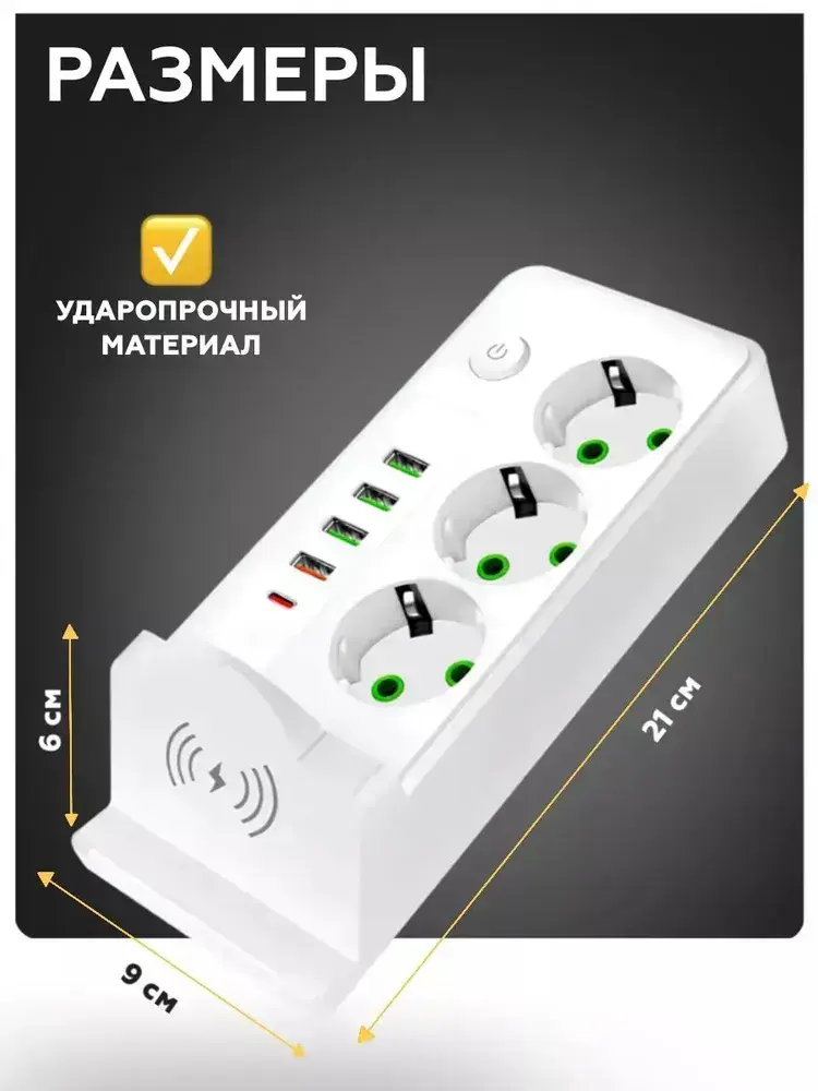 Сетевой фильтр удлинитель usb беспроводная зарядка 9в1 3 метра