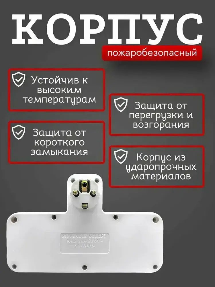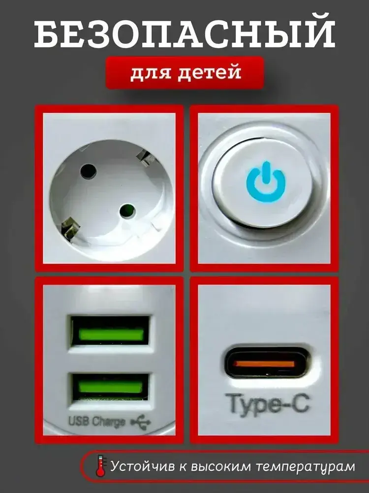 Сетевой разветвитель на 2 розетки, с USB и Type-C, с функцией ночника