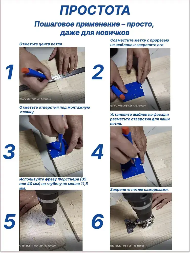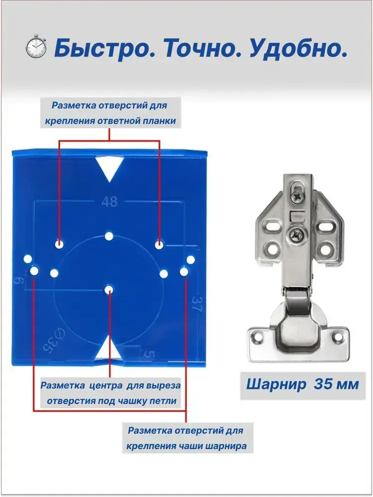 Шаблон мебельный для разметки и установки петель. Кондуктор копировальный для фасадных петель.