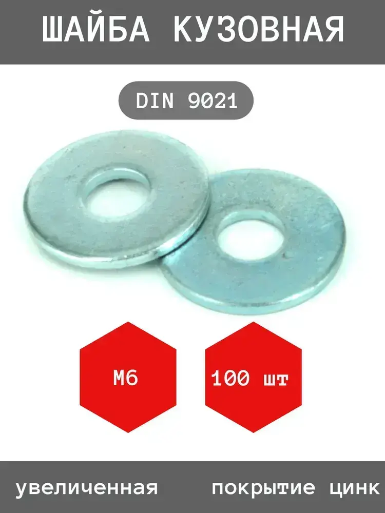 Шайба кузовная, М6 DIN9021 ZN, цинк, увеличенная 100 (штук) / шайба усиленная, антикоррозийная, Ф6.4 ГОСТ 6958-78, 100 шт.
