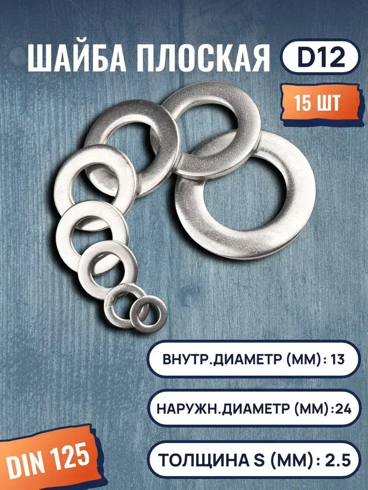 Шайба плоская DIN125 D12 15 шт