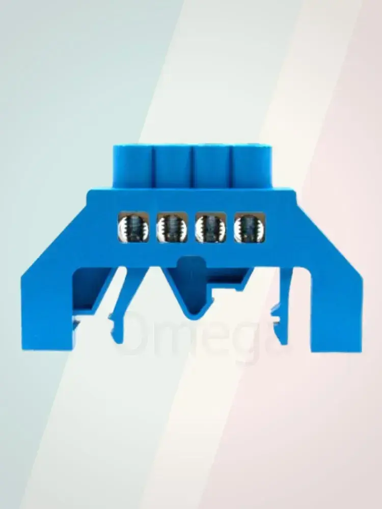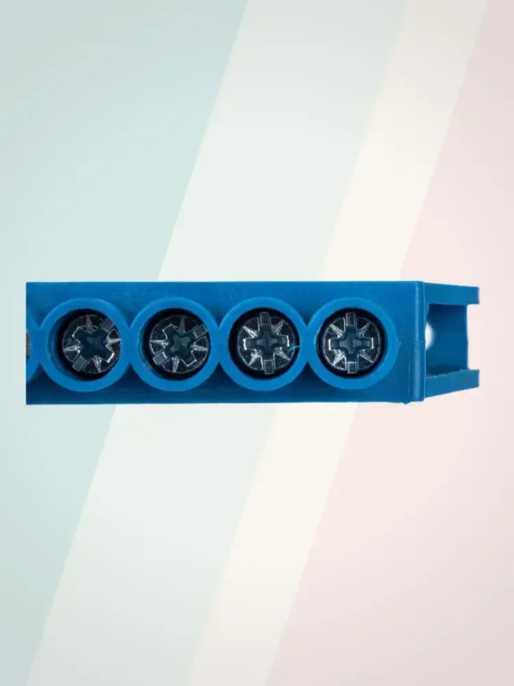 Шина нулевая/заземления 6х9 в изоляторе на дин-рейку (DIN), 4 контакта, синий, 1шт.