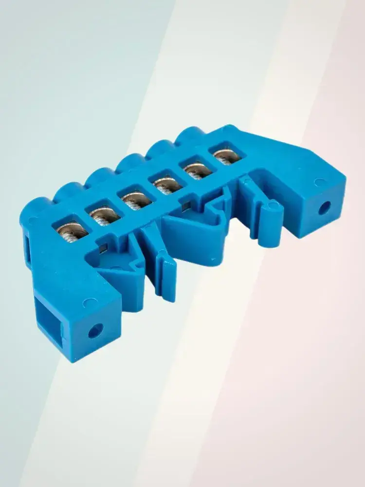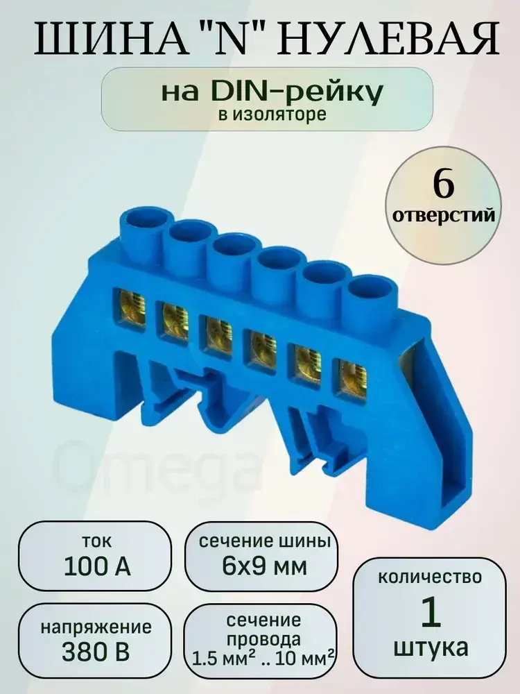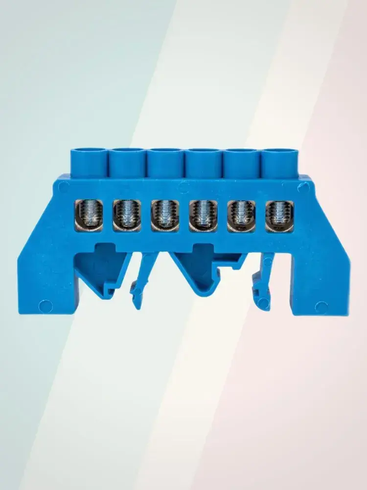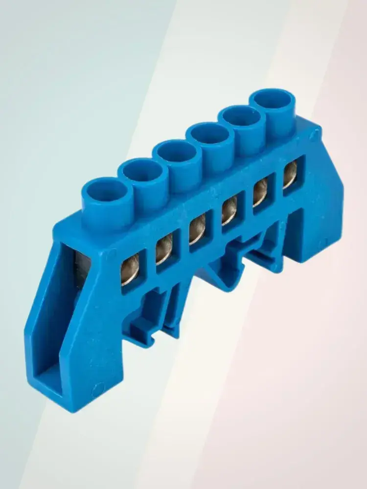 Шина нулевая/заземления 6х9 в изоляторе на дин-рейку (DIN), 6 контактов, синий, 1шт.