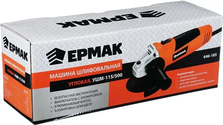 Шлифмашина угловая Ермак УШМ-115/500, 646-185, оранжевый