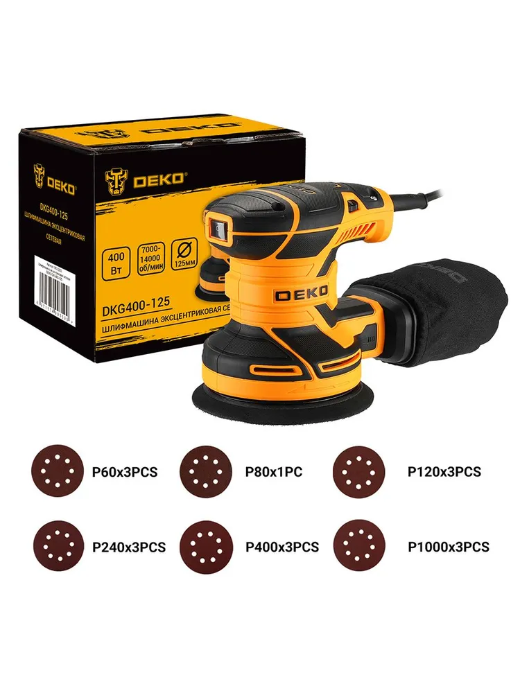 Шлифовальная машина эксцентриковая сетевая DEKO DKG400-125