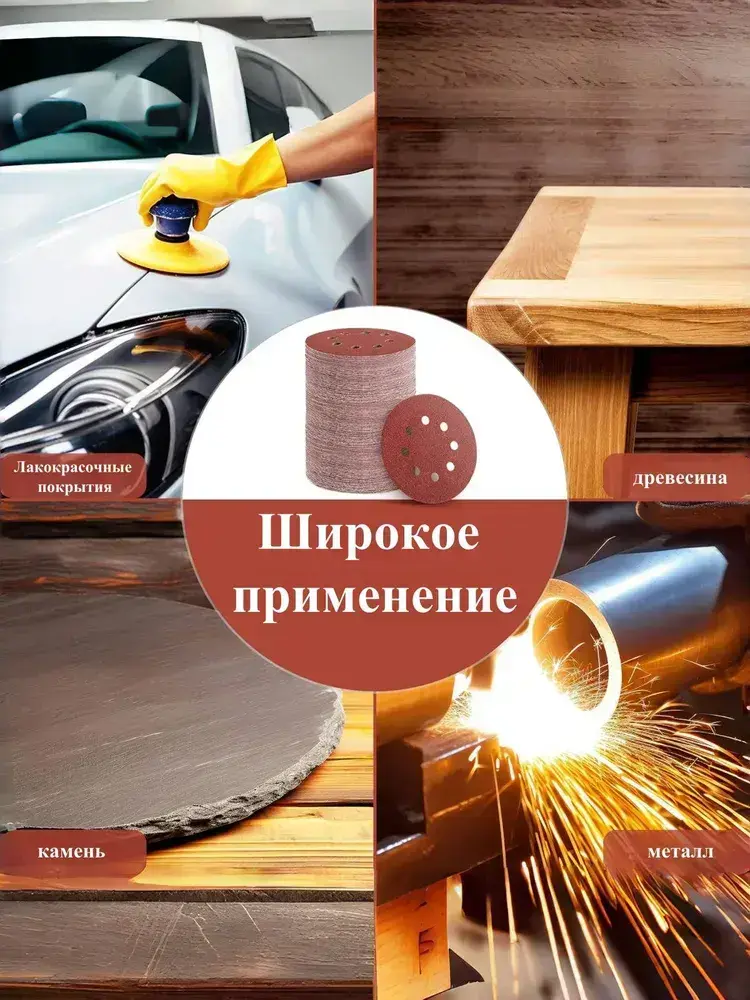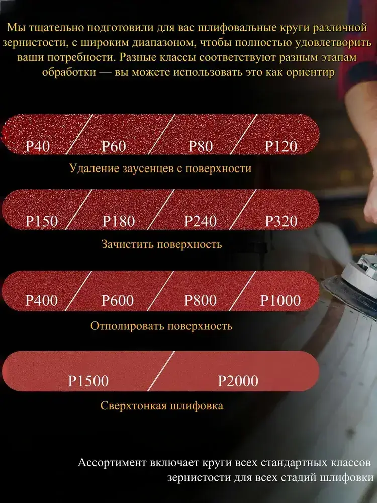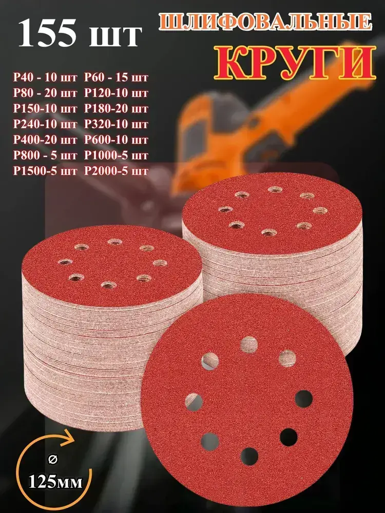 Шлифовальные круги 125мм на липучке 155 шт набор / Диски шлифовальные набор Р40 - Р2000