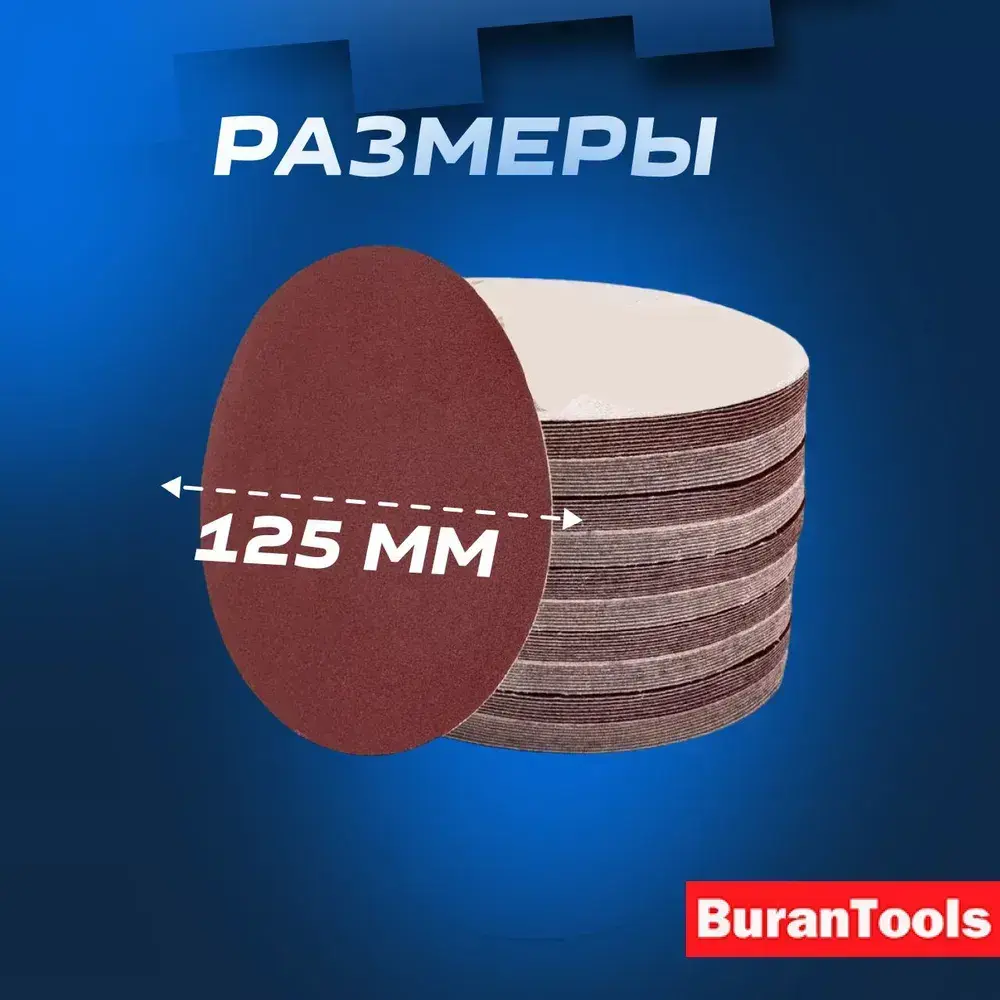 Шлифовальные круги 125мм на липучке Р60 100шт / Диск шлифовальный