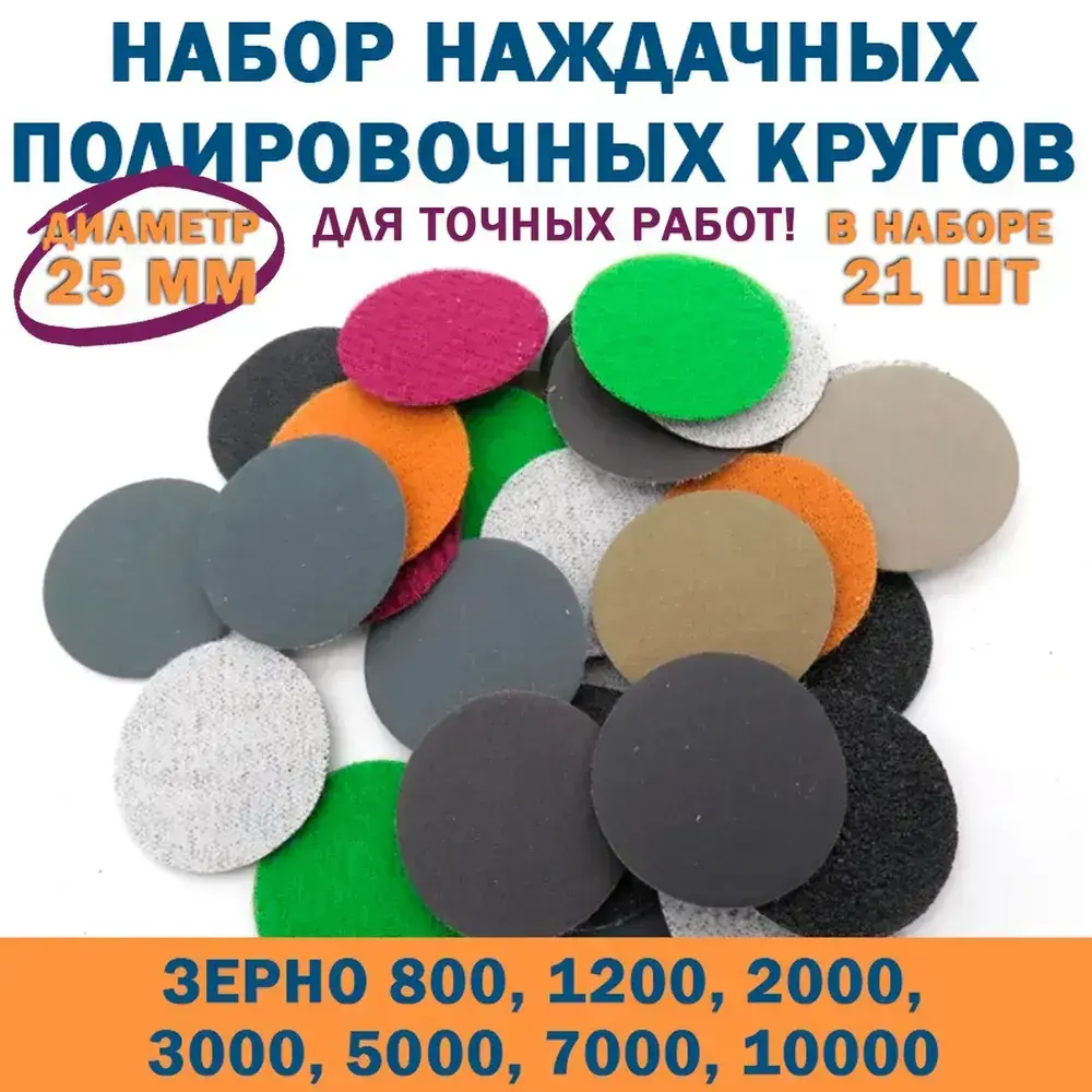 Шлифовальные, полировальные круги, набор, 25мм, высокая зернистость