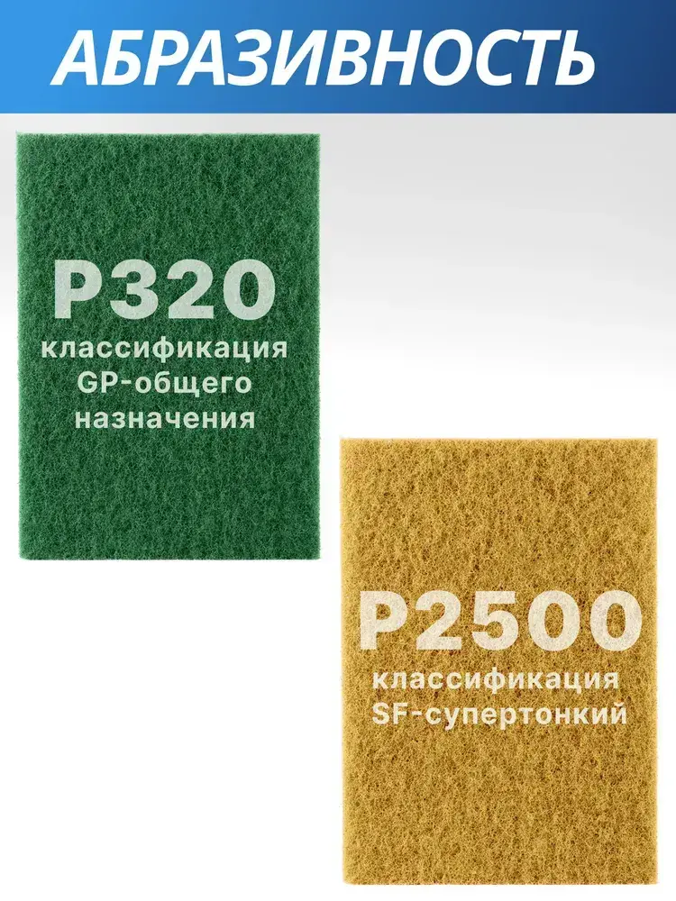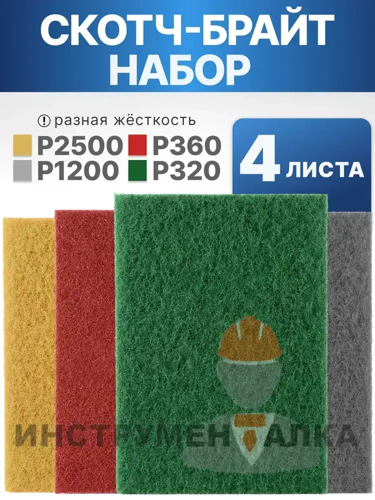 Шлифовальный войлок набор 4 штуки 115x152мм (P320, P360, P1200, P2500), нетканый абразивный материал, скотч брайт разноцветный