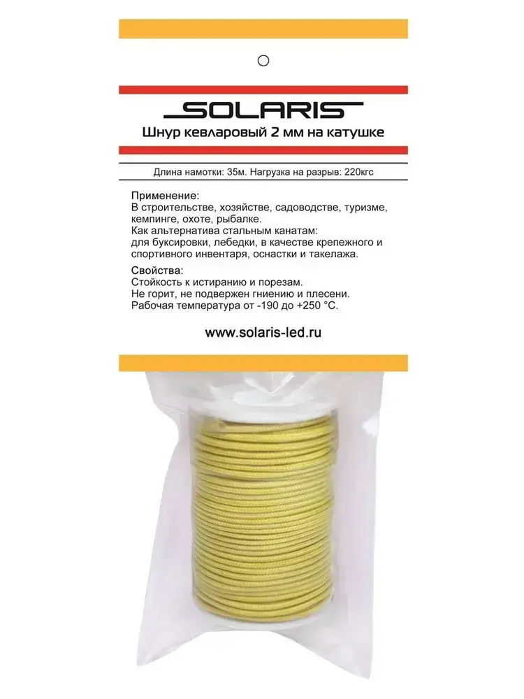 Шнур кевларовый на катушке 2,0 мм х 35 м, SOLARIS, S6418