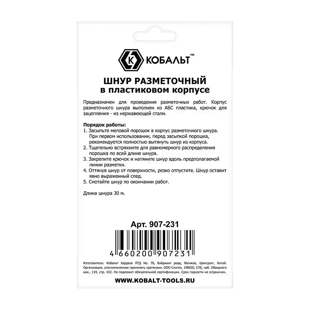 Шнур разметочный КОБАЛЬТ 30 метров.