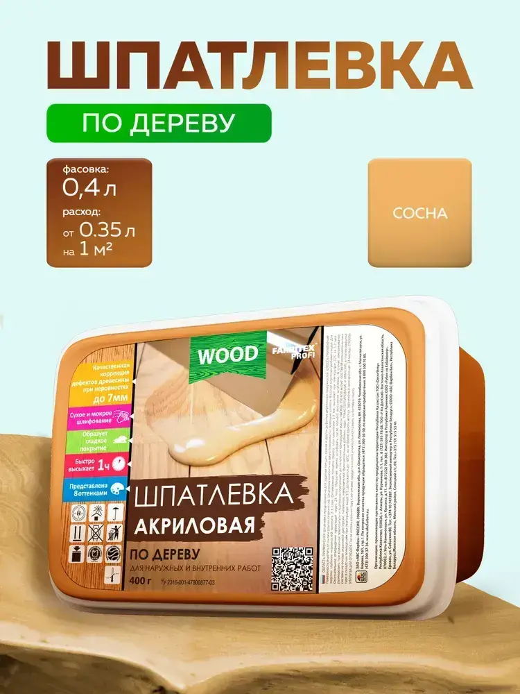 Шпатлевка по дереву готовая FARBITEX ПРОФИ WOOD, акриловая, цвет: Сосна, 0,4 кг