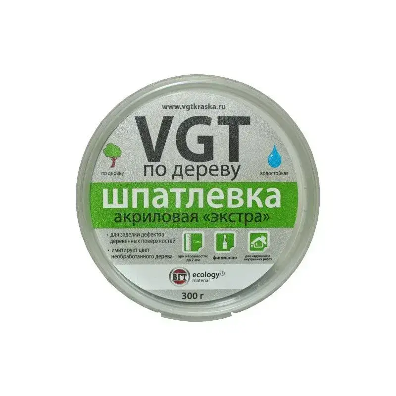 Шпатлевка(шпаклевка) VGT готовая акриловая по дереву ЭКСТРА мебельная, столярная, белая, 0,3кг