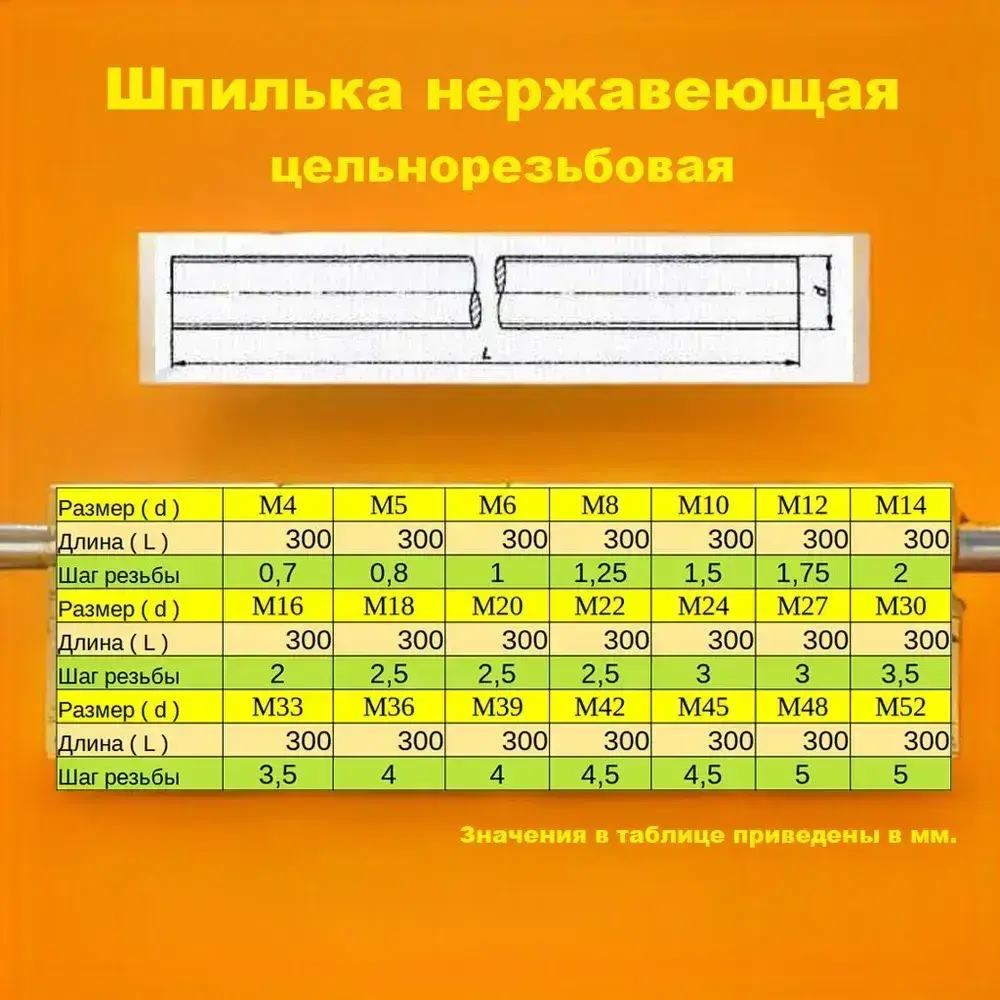 Шпилька нержавеющая цельнорезьбовая М4х80мм DIN 975 (DIN 976) А2 (А4)