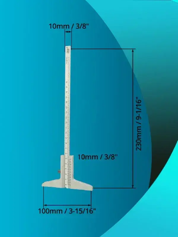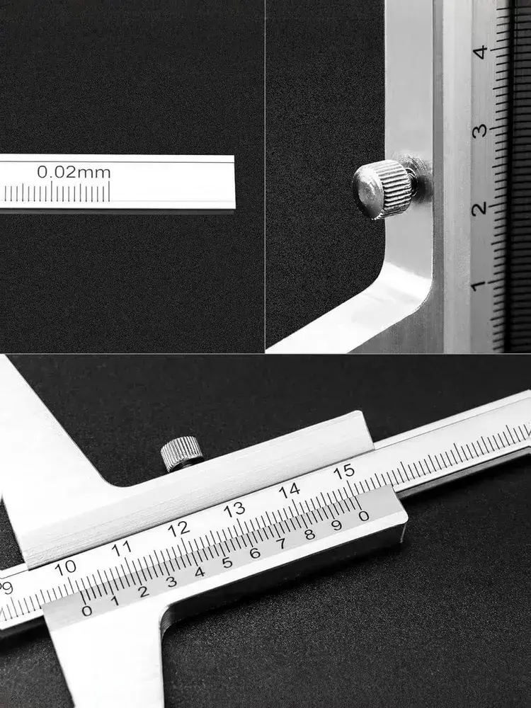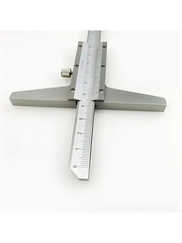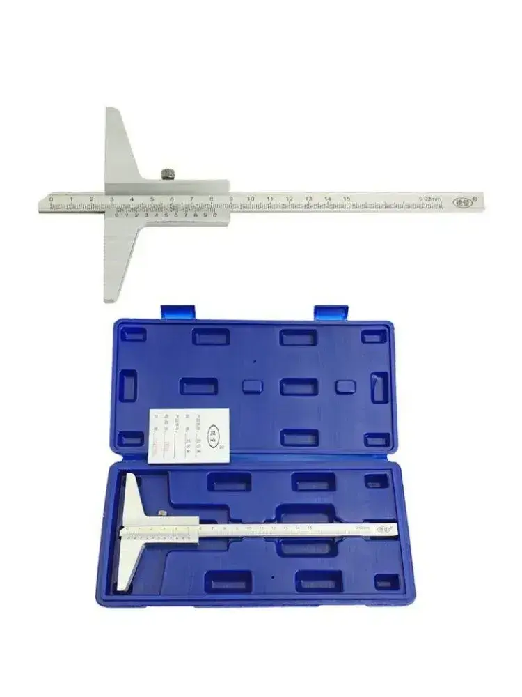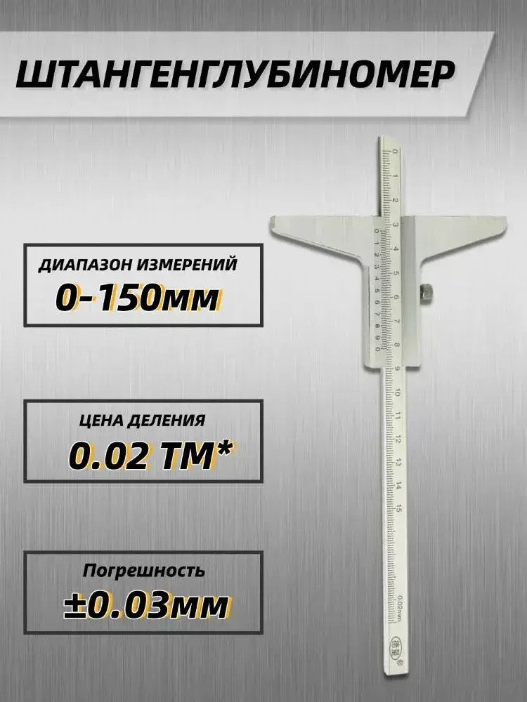Штангенглубиномер 150 мм, с стопорным винтом и шкалой нониуса, с ценой деления 0.02 мм.
