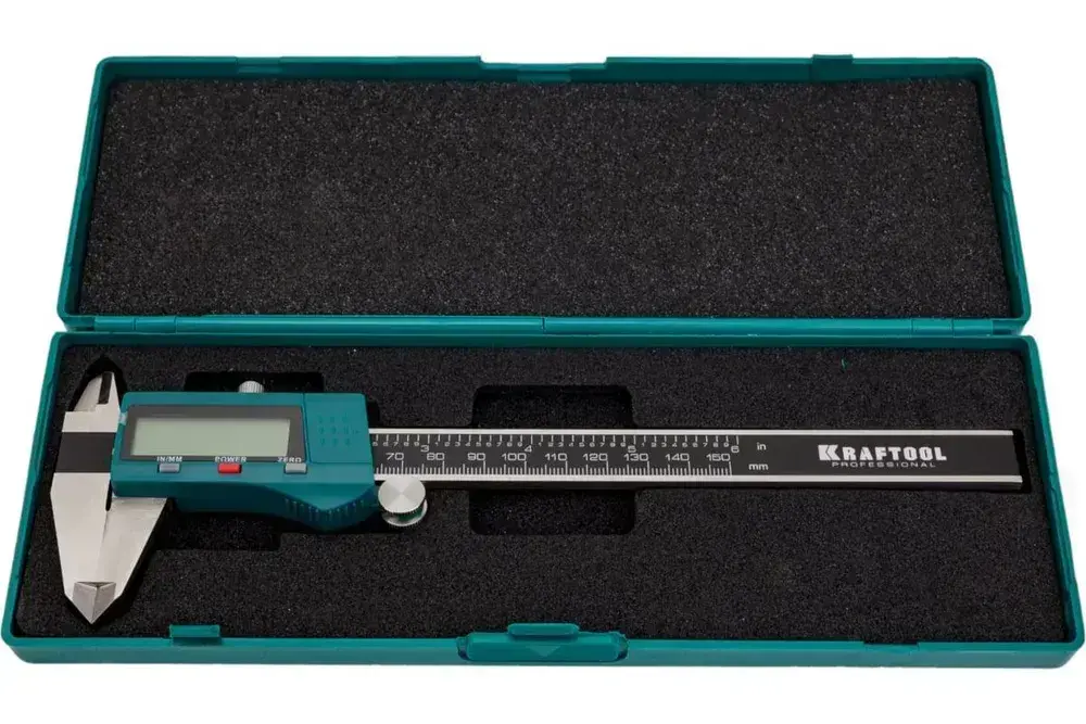 Штангенциркуль электронный KRAFTOOL 150 мм, нерж.сталь, мм/дюймы, дисплей , кейс