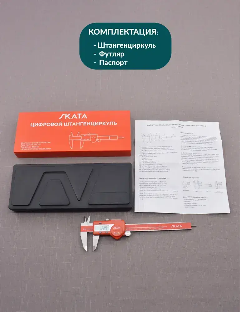 Штангенциркуль металлический цифровой, 0-150 мм, SKATA