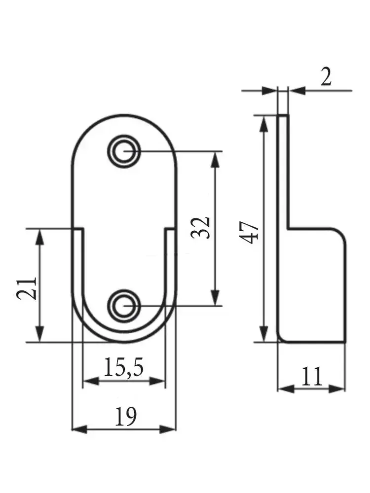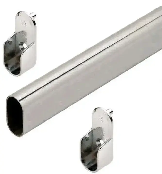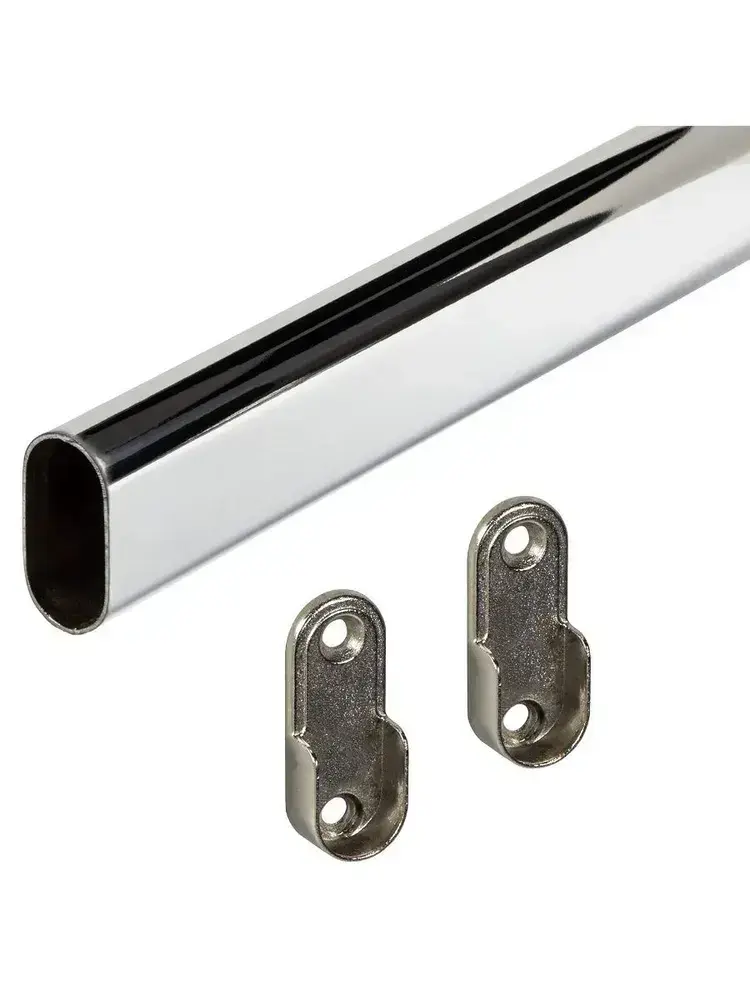Штангодержатель мебельный для овальной штанги шириной 15,5 мм, 2 шт. OTLEX для шкафа и гардероба, боковое крепление, замак, никель