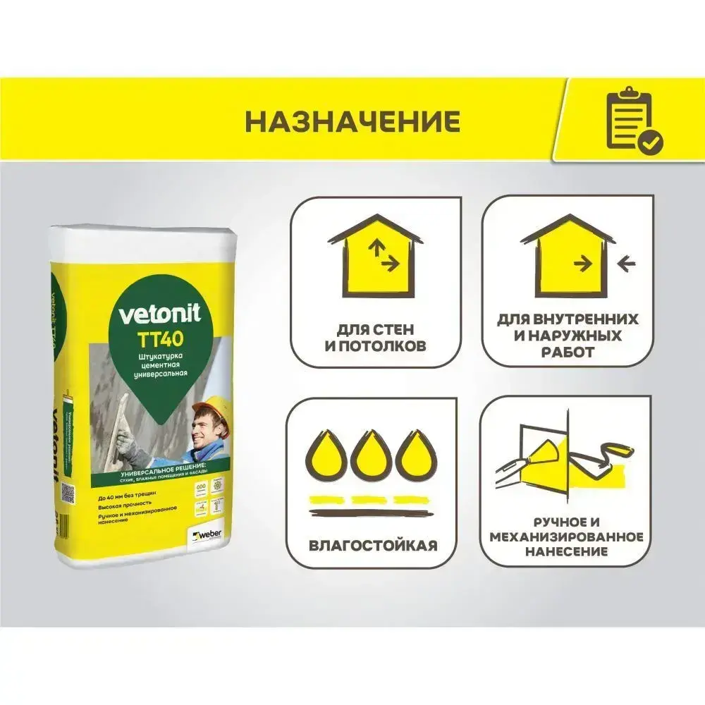 Штукатурка цементная Вебер Ветонит ТТ40 25 кг / Штукатурка цементная Weber Vetonit TT40 25 кг