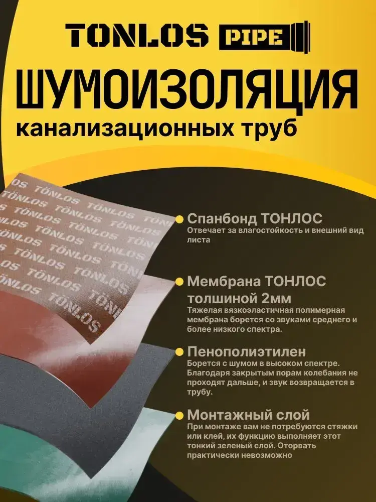 Шумоизоляция для канализационных труб TONLOS Pipe. Многослойная мембранная.