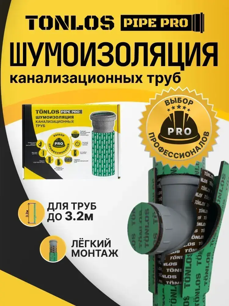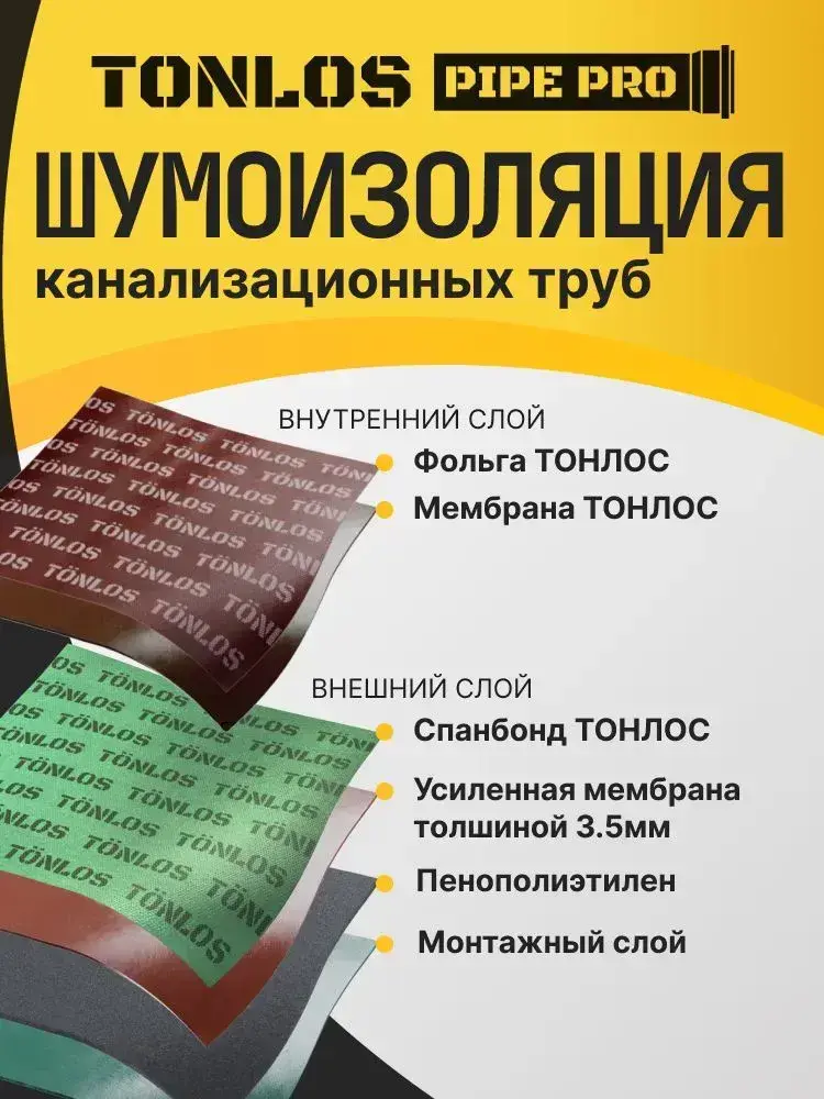 Шумоизоляция для канализационных труб TONLOS Pipe Pro. Профессиональный набор многослойной мембранной шумоизоляции.