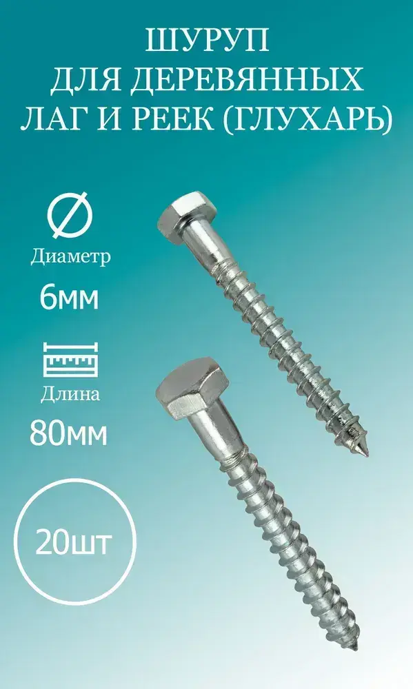 Шуруп для деревянных лаг и реек (глухарь) 6х80 20 шт.
