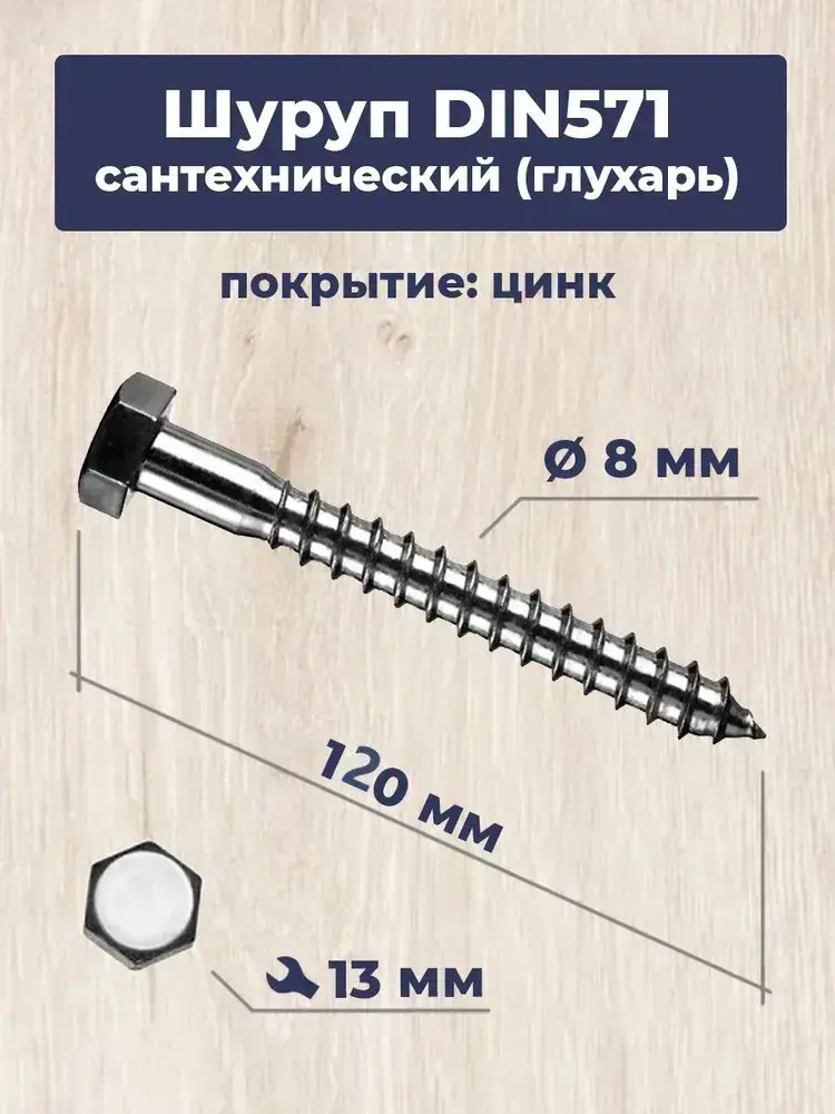 Шуруп сантехнический "Глухарь" 8х120мм (10шт) .
