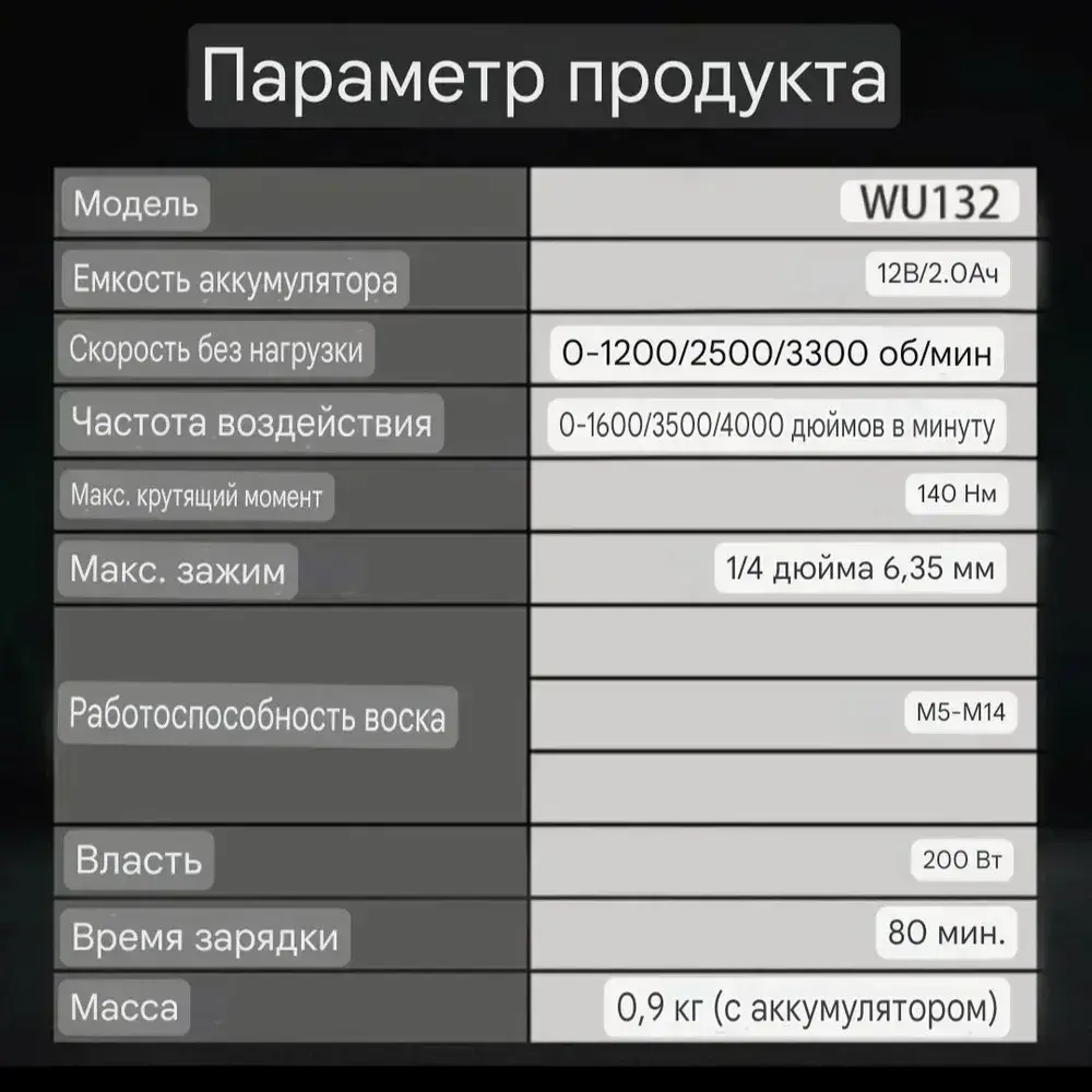 Шуруповерт, 12 В, 140 Нм, 2 АКБ